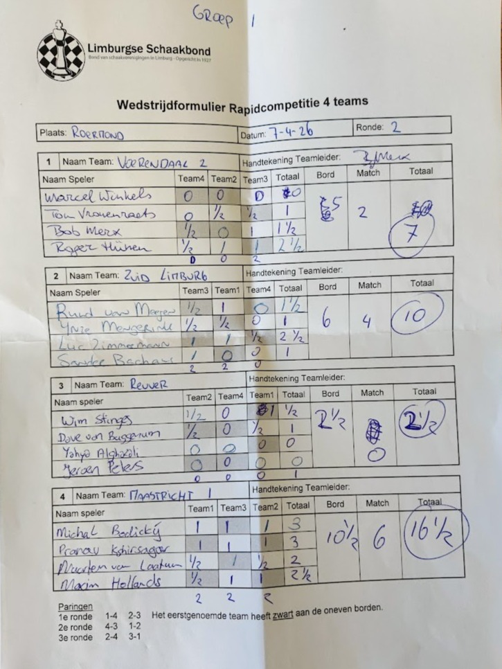 Uitslagen 1e ronde Rapid competitie 2025-2026