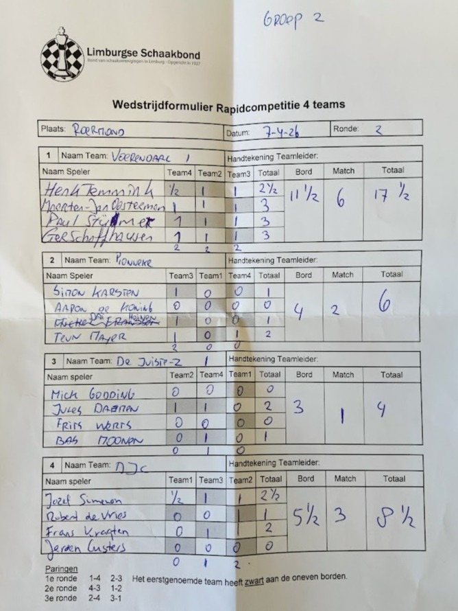 Uitslagen 2e ronde Rapid competitie 2025-2026