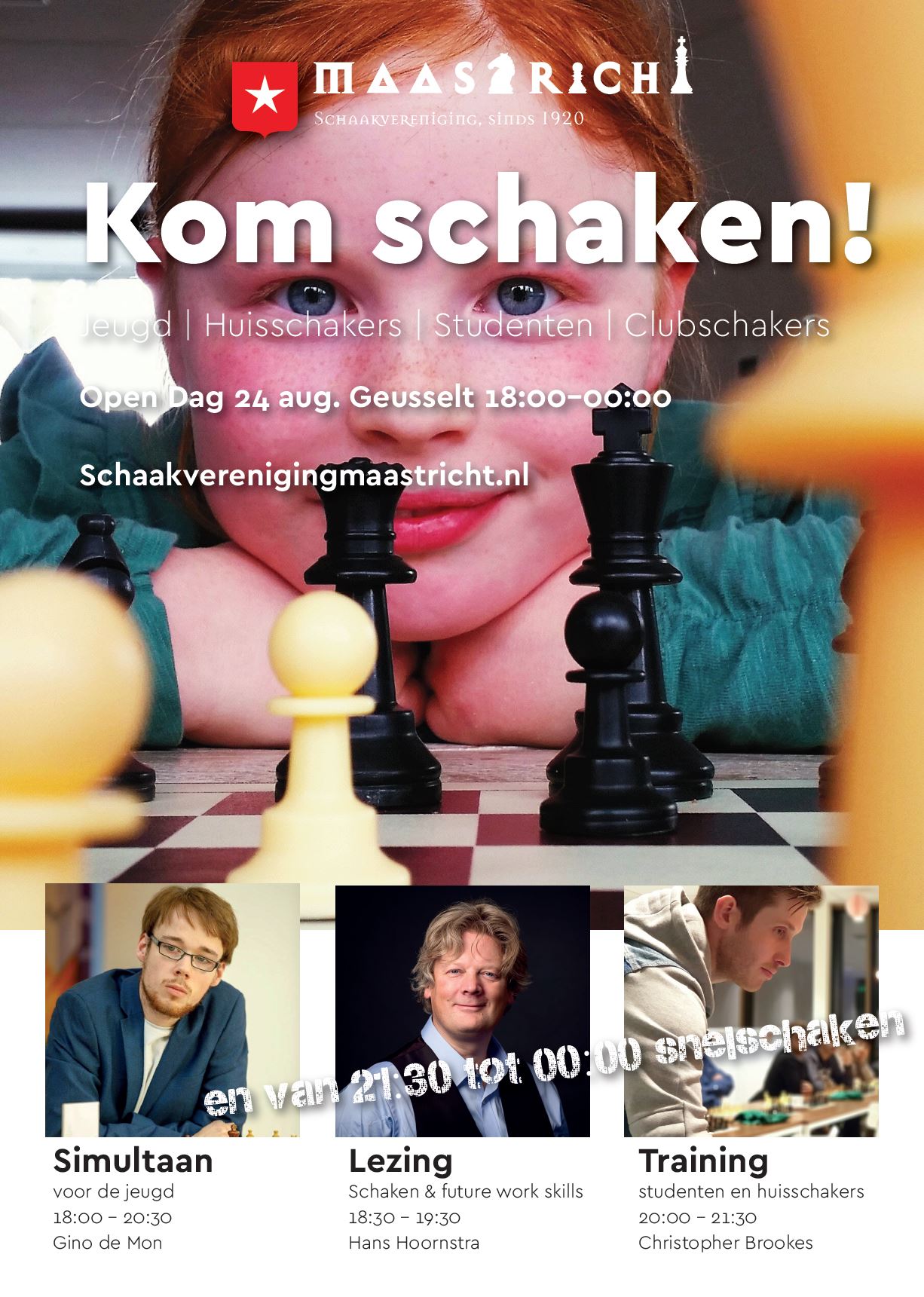 Zaterdag houdt Schaakvereniging Maastricht een Open Dag. Simultaanliefhebbers kunnen dan herkansen omdat Gino de Mon dan een simultaan zal verzorgen.